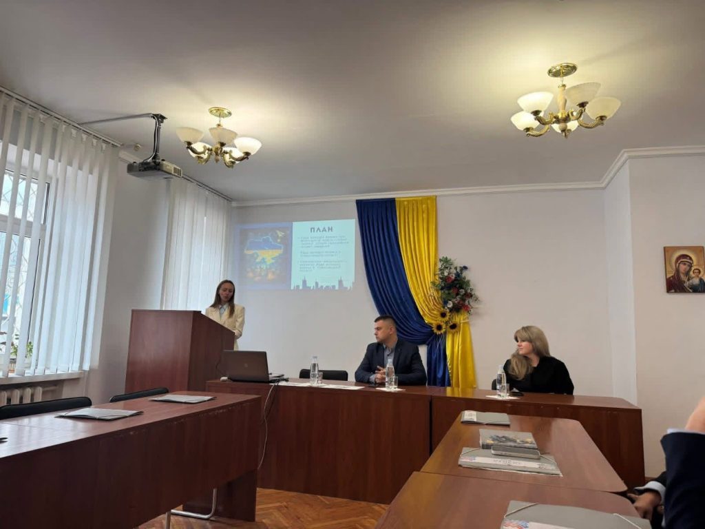 – Олександра Шевчук, доктор педагогічних наук, доцент кафедри іноземних мов НАДПСУ, регіональний координатор РМВ при МОН, представила доповідь про стан і перспективи участі молодих вчених у реалізації інноваційного потенціалу Хмельниччини.