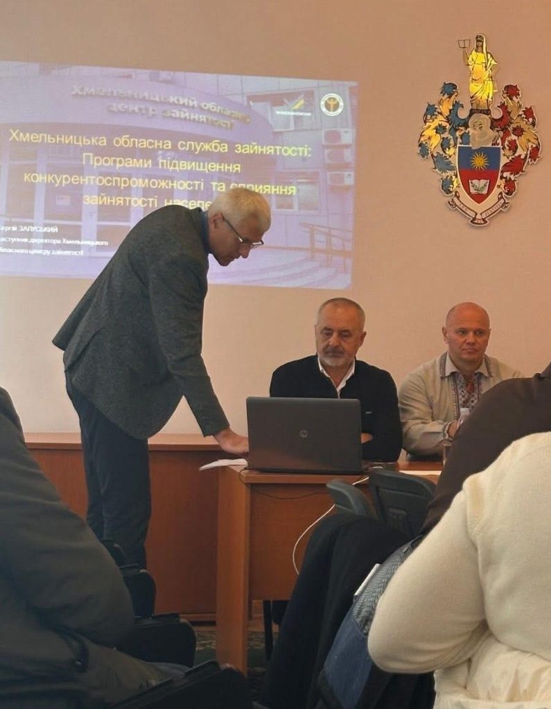 – Сергій Залуський, заступник директора Хмельницького обласного центру зайнятості, який представив програми підвищення конкурентоспроможності та сприяння зайнятості населення;