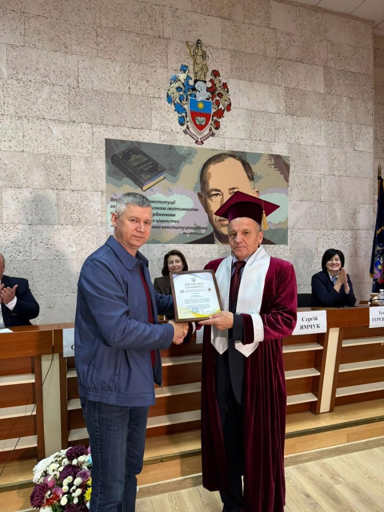 Особливим моментом заходу стала урочиста церемонія присвоєння Віктору Петровичу Синчаку почесного звання Doctor Honoris Causa Хмельницького університету управління та права імені Леоніда Юзькова — знаку найвищої пошани академічної спільноти, визнання його визначного внеску у розвиток фінансової освіти, науки та формування нової генерації фахівців. Під звучання гімну Gaudeamus igitur ректор університету вручив Віктору Петровичу мантію Почесного доктора, диплом та почесну відзнаку. Цей момент став кульмінацією події, наповненої щирими емоціями, вдячністю й гордістю.