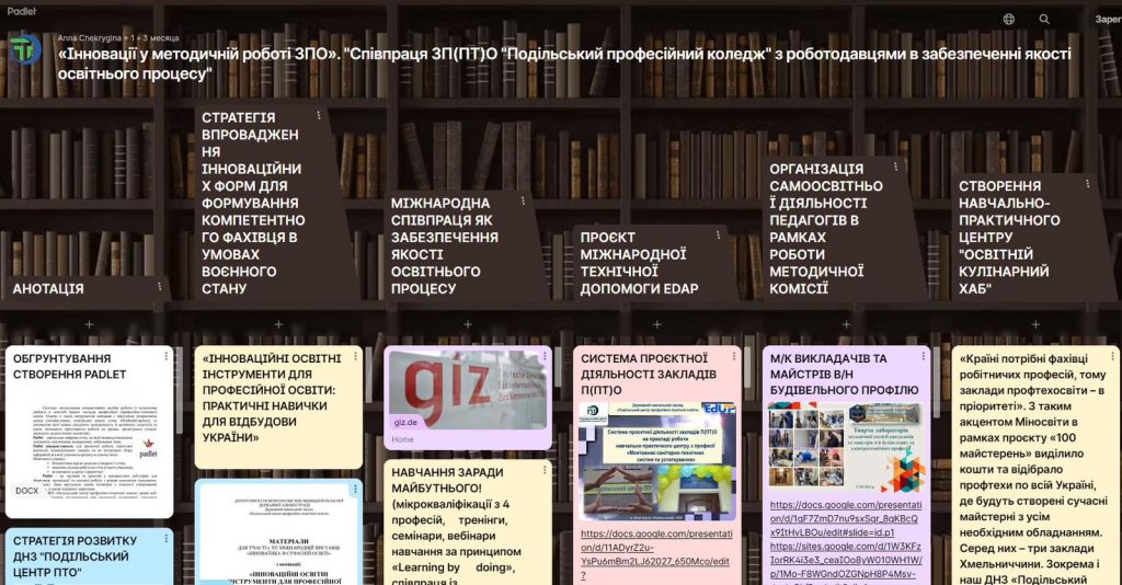 🔹Чекригіна Ганна Борисівна, заступник директора з науково-методичної роботи ЗП(ПТ)О “Подільський професійний коледж”, – Padlet-дошка «Інновації у методичній роботі ЗПО». “Співпраця ЗП(ПТ)О “Подільський професійний коледж” з роботодавцями в забезпеченні якості освітнього процесу” (диплом ІІ ступеня).