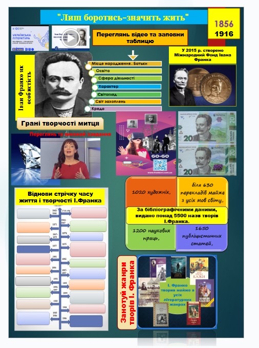 🔹Рибчинська Оксана Володимирівна, викладачка ДНЗ «Полонський агропромисловий центр професійної освіти», – інфографіка до теми: «Титан духу і думки» (Іван Франко) (диплом І ступеня);