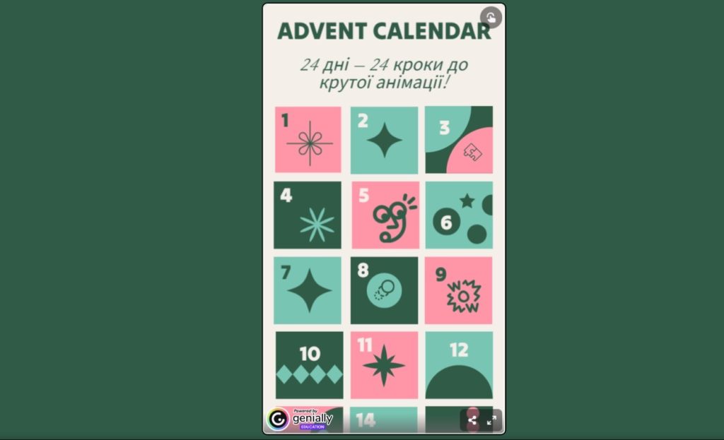 🔹Грушецька Інна Олександрівна, викладачка Вищого професійного училища № 25 м. Хмельницького, – адвент-календар «24 дні – 24 кроки до крутої анімації» (диплом ІІІ ступеня);