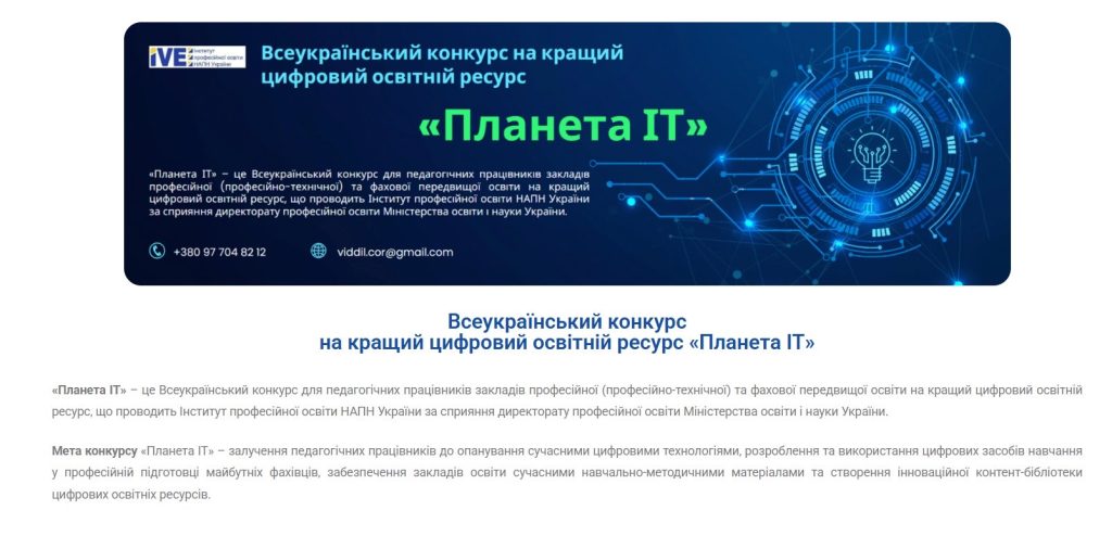 Щороку наші викладачі беруть участь у Всеукраїнському конкурсі на кращий цифровий освітній ресурс «Планета ІТ», організованому Інститутом професійної освіти НАПН України за підтримки Директорату професійної освіти Міністерства освіти і науки України. Результати цього конкурсу є ключовою інформаційною платформою для створення інноваційної контент-бібліотеки та забезпечення якісної підготовки майбутніх фахівців.